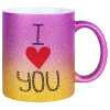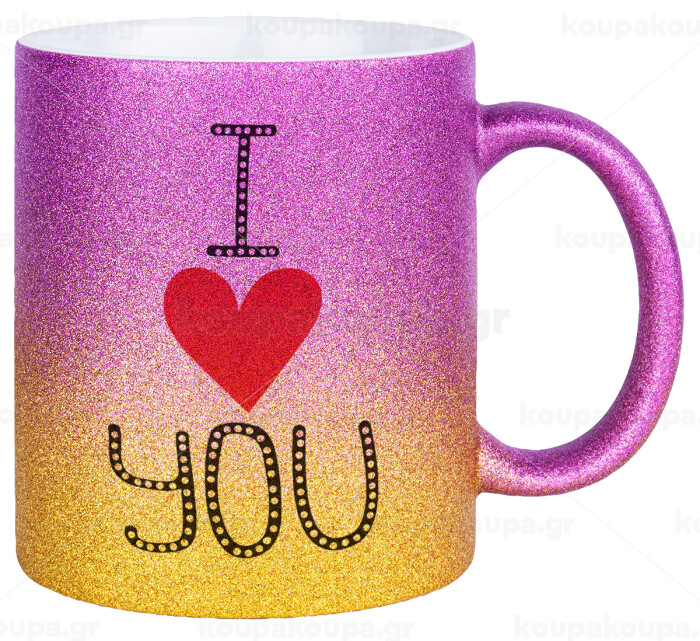 I Love You small dots, Κούπα Χρυσή/Ροζ Glitter, κεραμική, 330ml