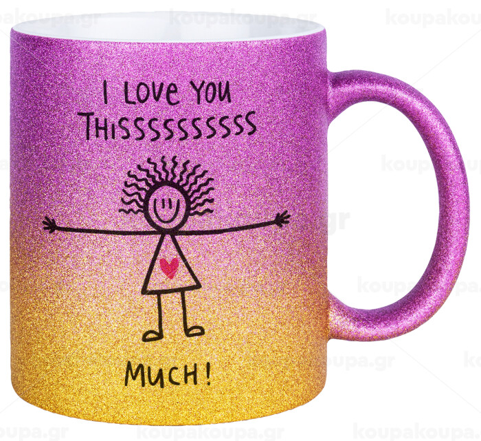 I Love you thissss much..., Κούπα Χρυσή/Ροζ Glitter, κεραμική, 330ml