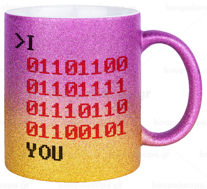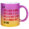 I .... YOU, binary secret MSG, Κούπα Χρυσή/Ροζ Glitter, κεραμική, 330ml
