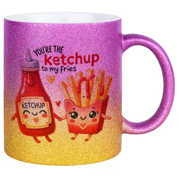 Ketchup To My Fries, Κούπα Χρυσή/Ροζ Glitter, κεραμική, 330ml