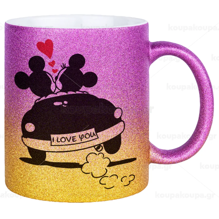 Love Car, Κούπα Χρυσή/Ροζ Glitter, κεραμική, 330ml