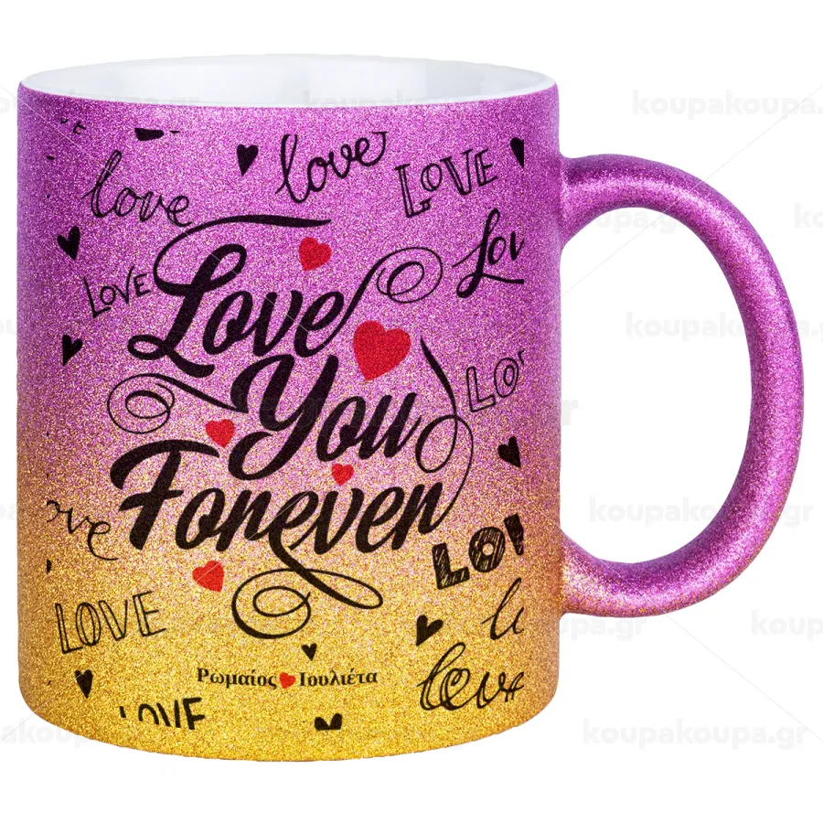 Love You Forever, Κούπα Χρυσή/Ροζ Glitter, κεραμική, 330ml