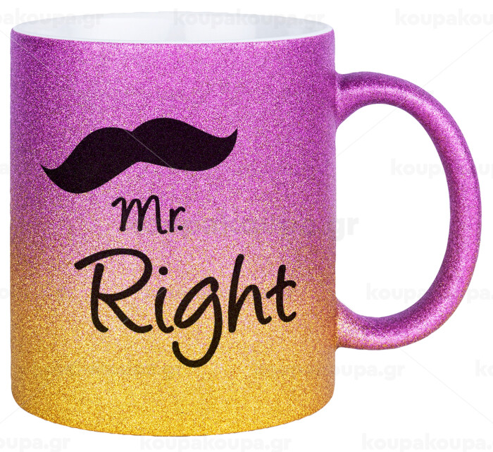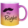 Mr right Mustache, Κούπα Χρυσή/Ροζ Glitter, κεραμική, 330ml