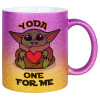 Yoda, one for me , Κούπα Χρυσή/Ροζ Glitter, κεραμική, 330ml