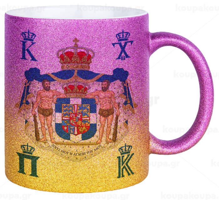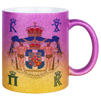 Hellas kingdom, Κούπα Χρυσή/Ροζ Glitter, κεραμική, 330ml