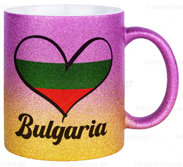 Bulgaria flag, Κούπα Χρυσή/Ροζ Glitter, κεραμική, 330ml