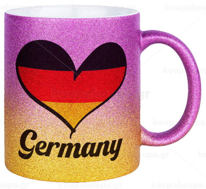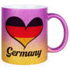 Germany flag, Κούπα Χρυσή/Ροζ Glitter, κεραμική, 330ml