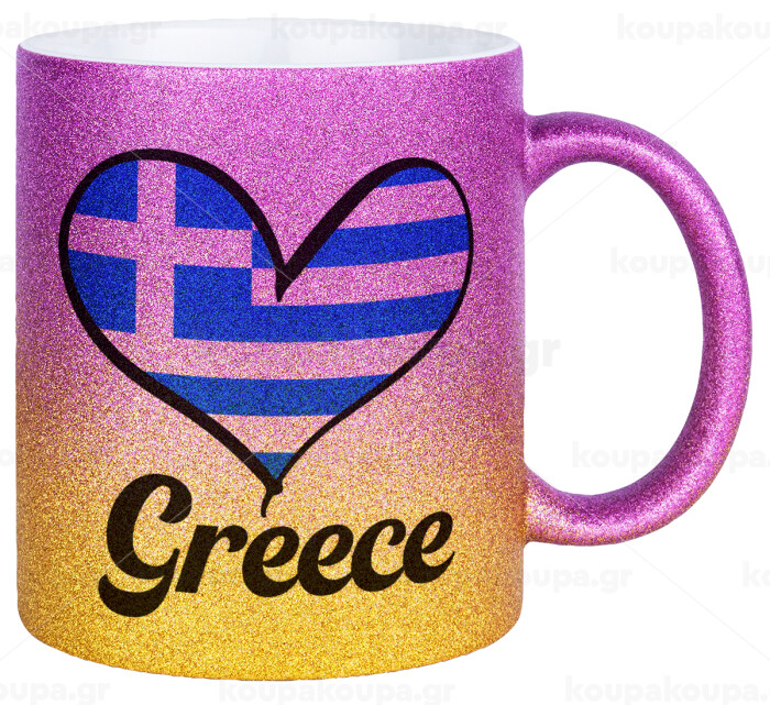 Greece flag, Κούπα Χρυσή/Ροζ Glitter, κεραμική, 330ml