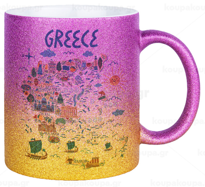 Greek map, Κούπα Χρυσή/Ροζ Glitter, κεραμική, 330ml