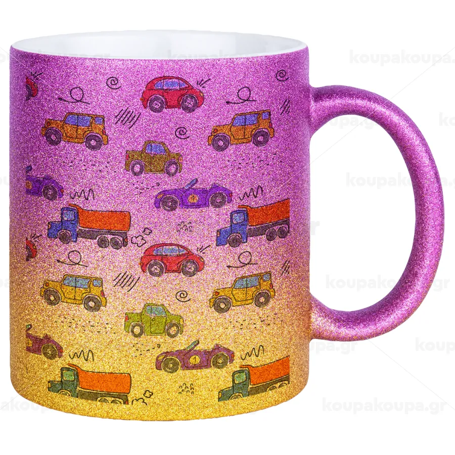Colorful cars, Κούπα Χρυσή/Ροζ Glitter, κεραμική, 330ml