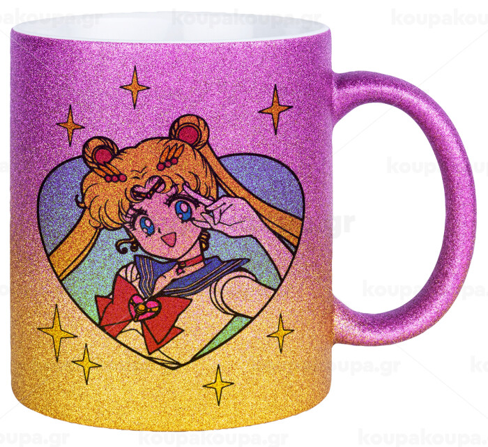 Sailor Moon star, Κούπα Χρυσή/Ροζ Glitter, κεραμική, 330ml