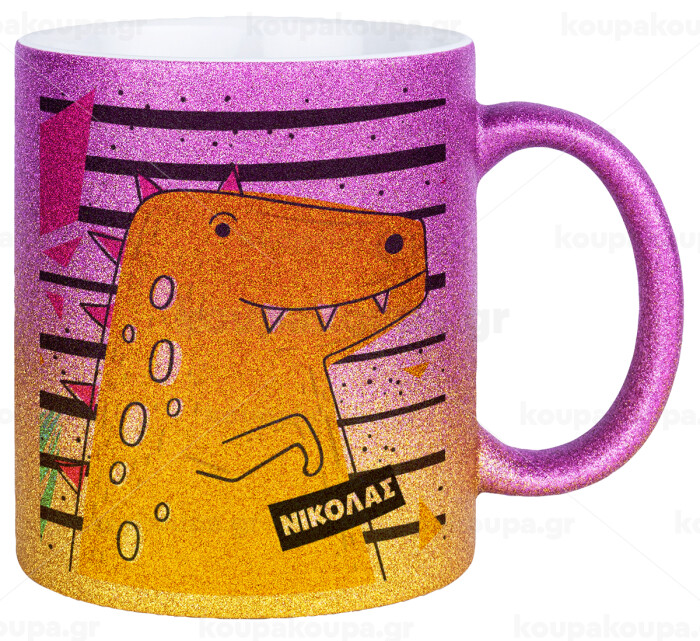 t-rex , Κούπα Χρυσή/Ροζ Glitter, κεραμική, 330ml