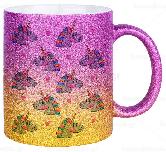 Unicorn, Κούπα Χρυσή/Ροζ Glitter, κεραμική, 330ml