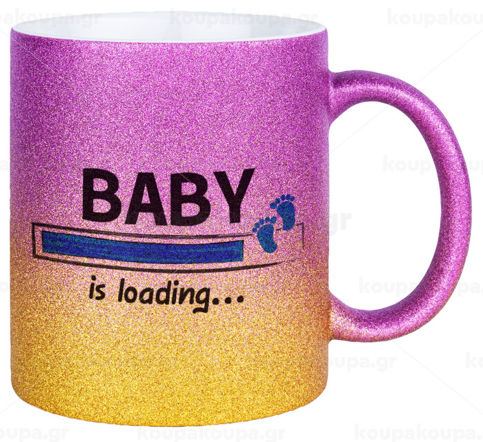 Baby is Loading BOY, Κούπα Χρυσή/Ροζ Glitter, κεραμική, 330ml