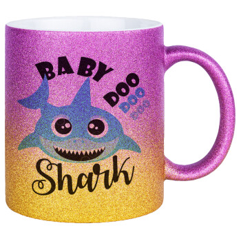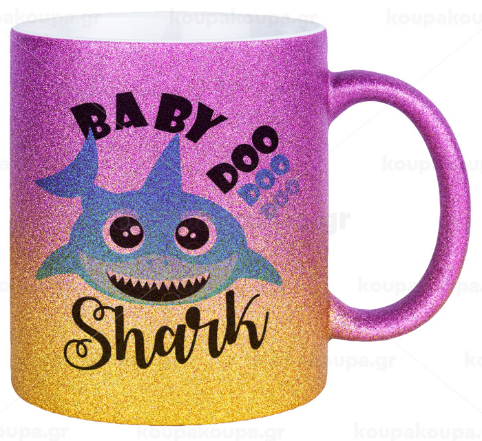Baby Shark (boy), Κούπα Χρυσή/Ροζ Glitter, κεραμική, 330ml