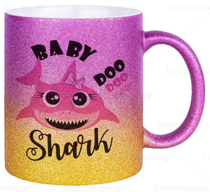 Baby Shark (girl), Κούπα Χρυσή/Ροζ Glitter, κεραμική, 330ml