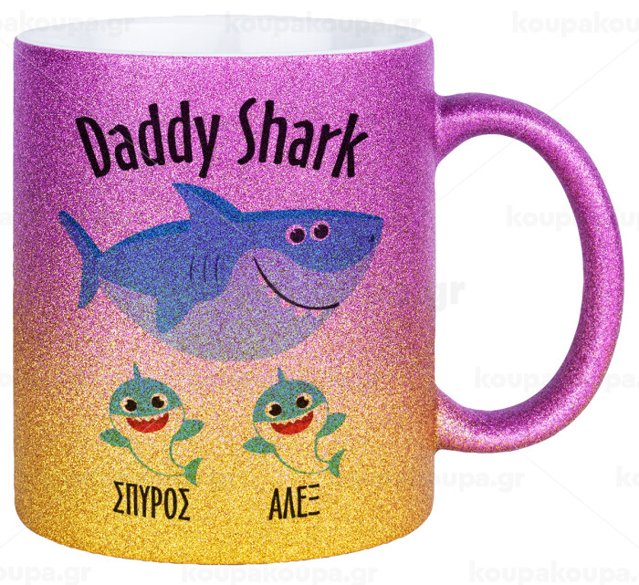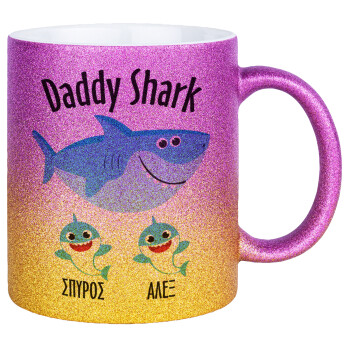 Daddy Shark (με ονόματα παιδικά), Κούπα Χρυσή/Ροζ Glitter, κεραμική, 330ml