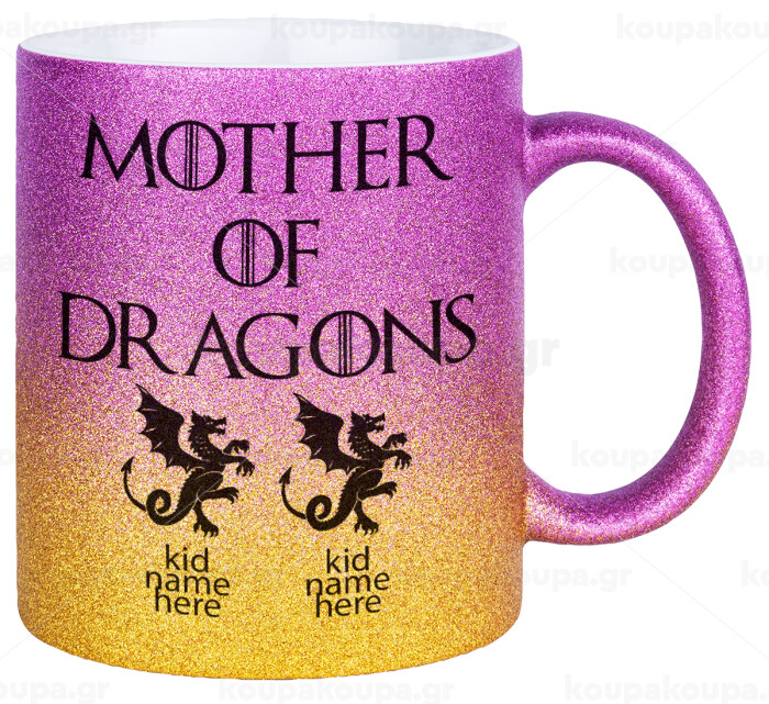 GOT, Mother of Dragons (με ονόματα παιδικά), Κούπα Χρυσή/Ροζ Glitter, κεραμική, 330ml