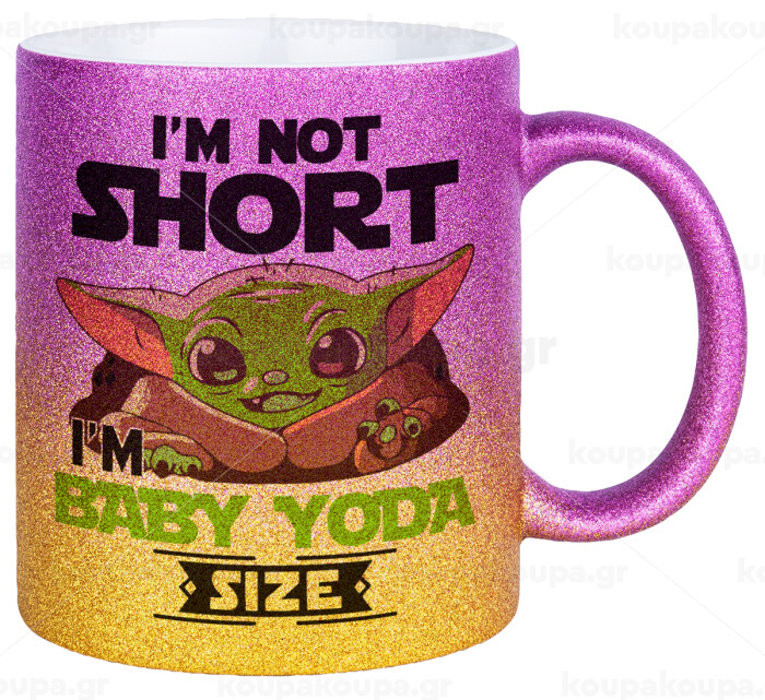 I'm not short, i'm Baby Yoda size, Κούπα Χρυσή/Ροζ Glitter, κεραμική, 330ml