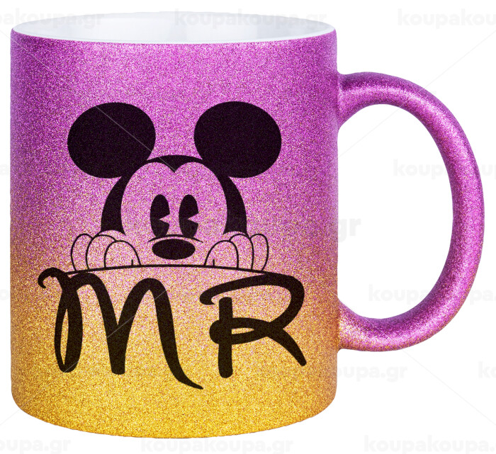 Mikey Mr, Κούπα Χρυσή/Ροζ Glitter, κεραμική, 330ml