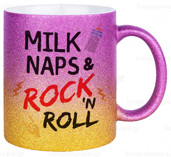 milk naps and Rock n' Roll, Κούπα Χρυσή/Ροζ Glitter, κεραμική, 330ml