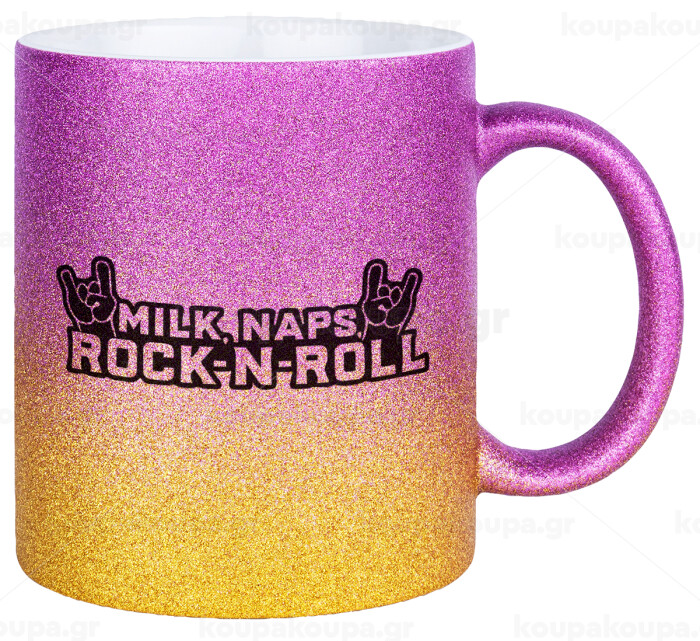 Milk, Naps, Rock N Roll, Κούπα Χρυσή/Ροζ Glitter, κεραμική, 330ml