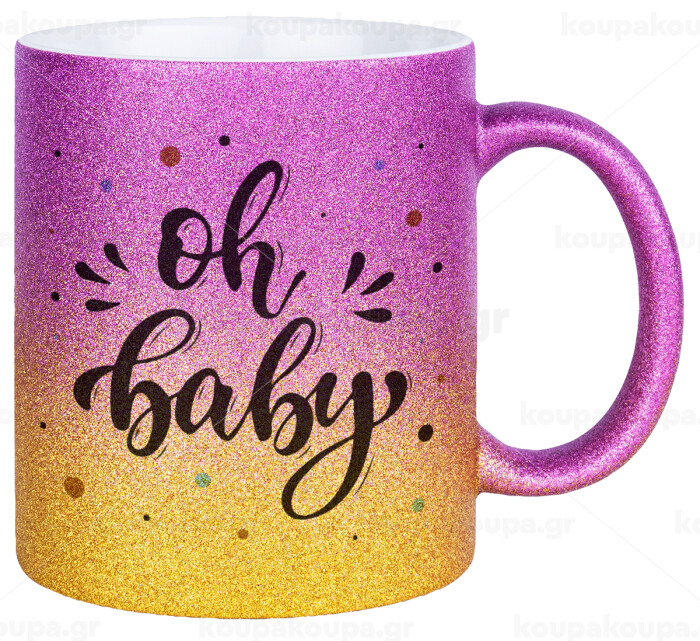 Oh baby, Κούπα Χρυσή/Ροζ Glitter, κεραμική, 330ml