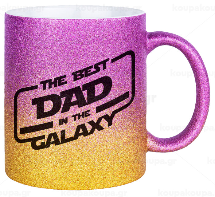 The Best DAD in the Galaxy, Κούπα Χρυσή/Ροζ Glitter, κεραμική, 330ml