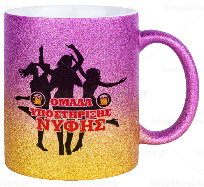 Bachelor Ομάδα υποστήριξης Νύφης, Κούπα Χρυσή/Ροζ Glitter, κεραμική, 330ml