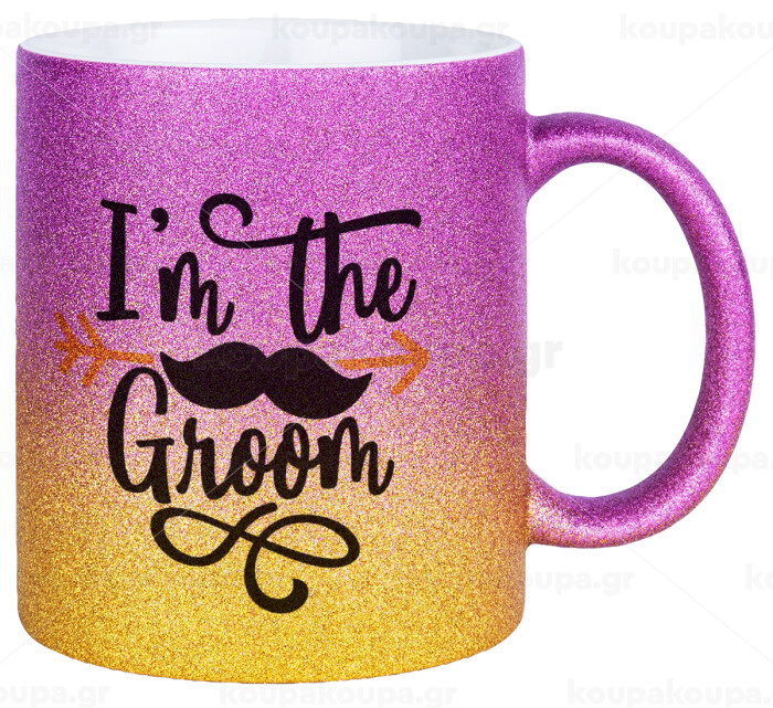 I'm the groom mustache, Κούπα Χρυσή/Ροζ Glitter, κεραμική, 330ml
