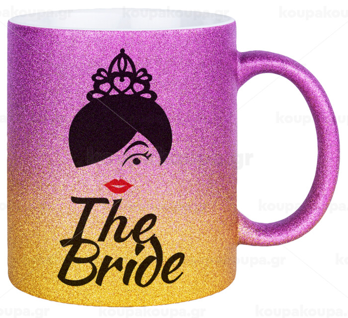 The Bride red kiss, Κούπα Χρυσή/Ροζ Glitter, κεραμική, 330ml