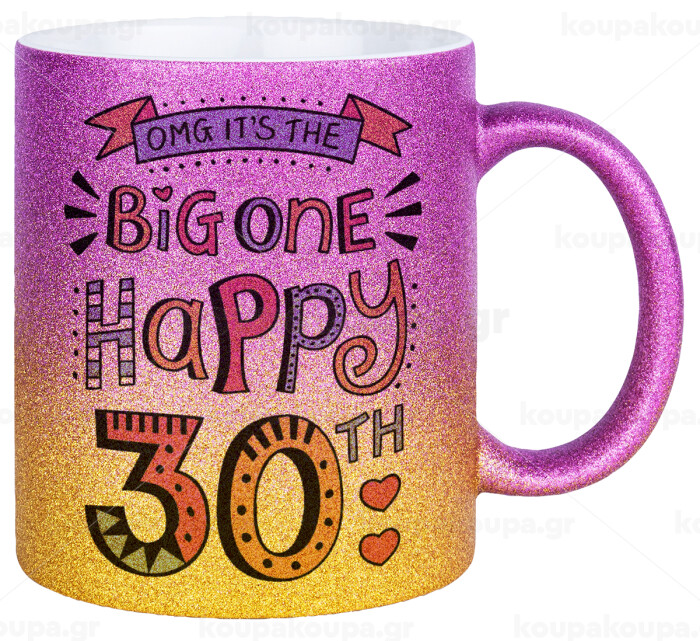 Big one Happy 30th, Κούπα Χρυσή/Ροζ Glitter, κεραμική, 330ml
