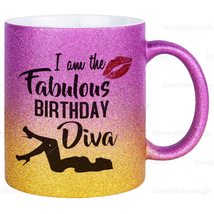 I am the fabulous Birthday Diva, Κούπα Χρυσή/Ροζ Glitter, κεραμική, 330ml