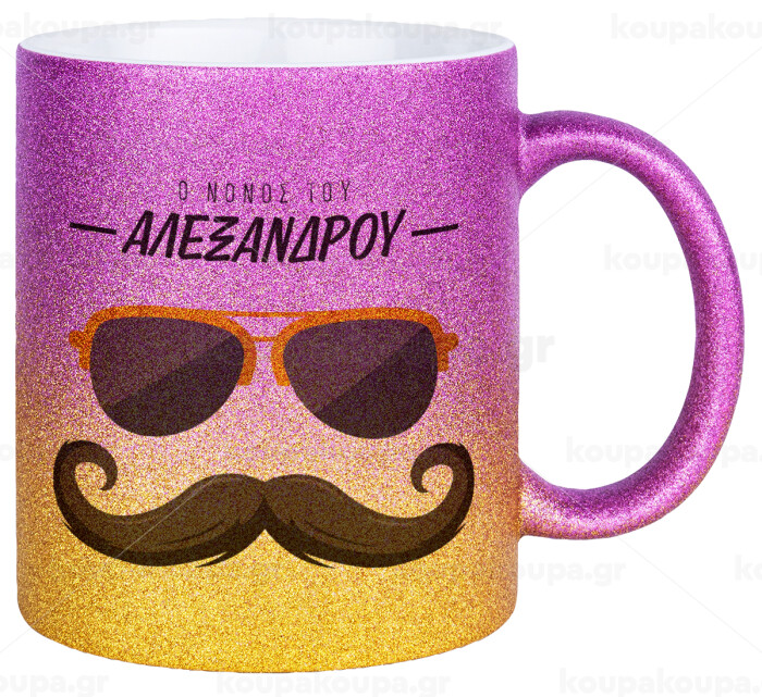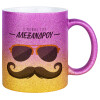 Ο νονός μου, μουστάκι με γυαλιά, Κούπα Χρυσή/Ροζ Glitter, κεραμική, 330ml