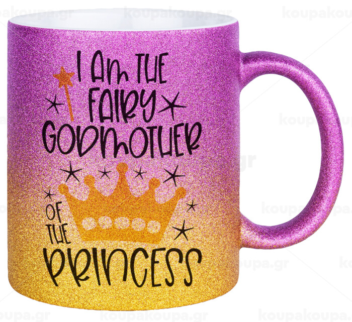 I am the fairy Godmother of the Princess, Κούπα Χρυσή/Ροζ Glitter, κεραμική, 330ml