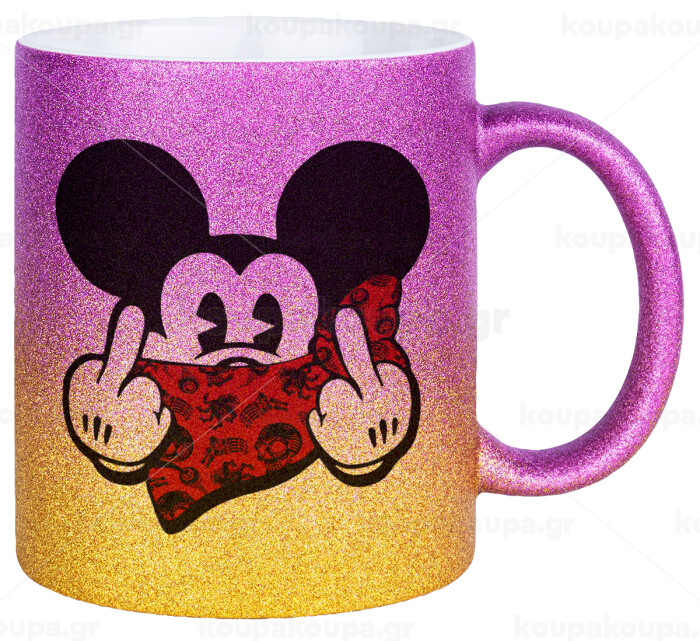 Mickey the fingers, Κούπα Χρυσή/Ροζ Glitter, κεραμική, 330ml