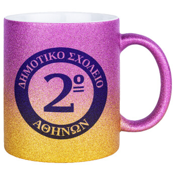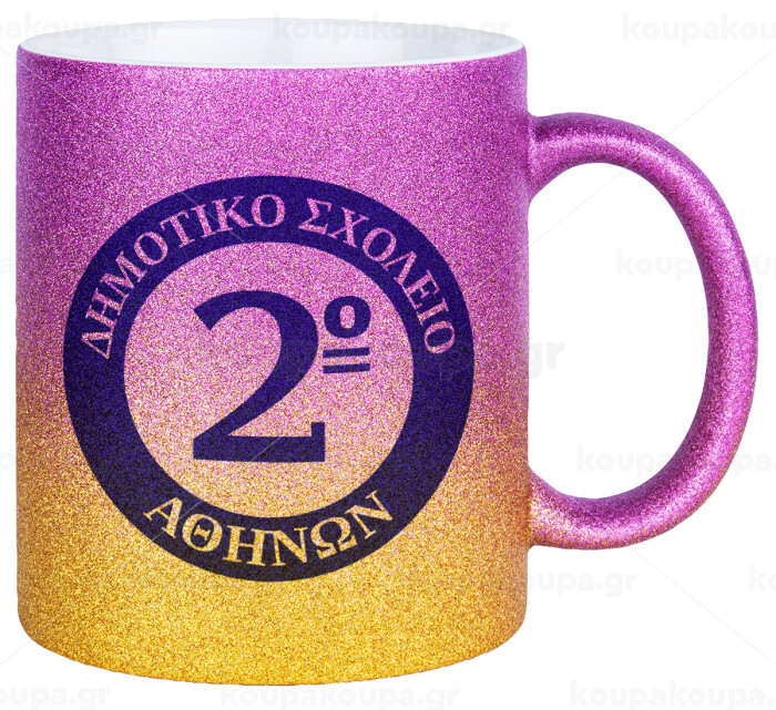 Έμβλημα Σχολικό μπλε, Κούπα Χρυσή/Ροζ Glitter, κεραμική, 330ml