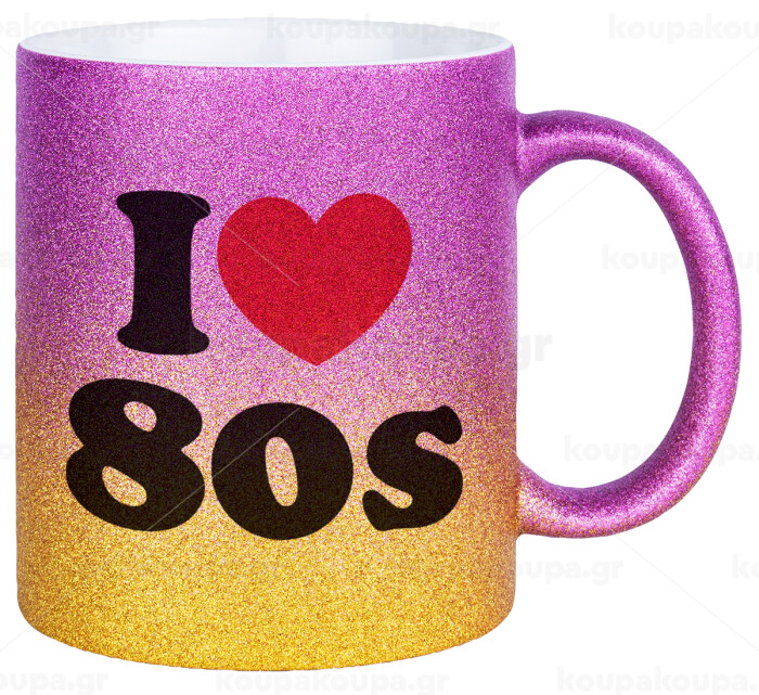 I Love 80s, Κούπα Χρυσή/Ροζ Glitter, κεραμική, 330ml
