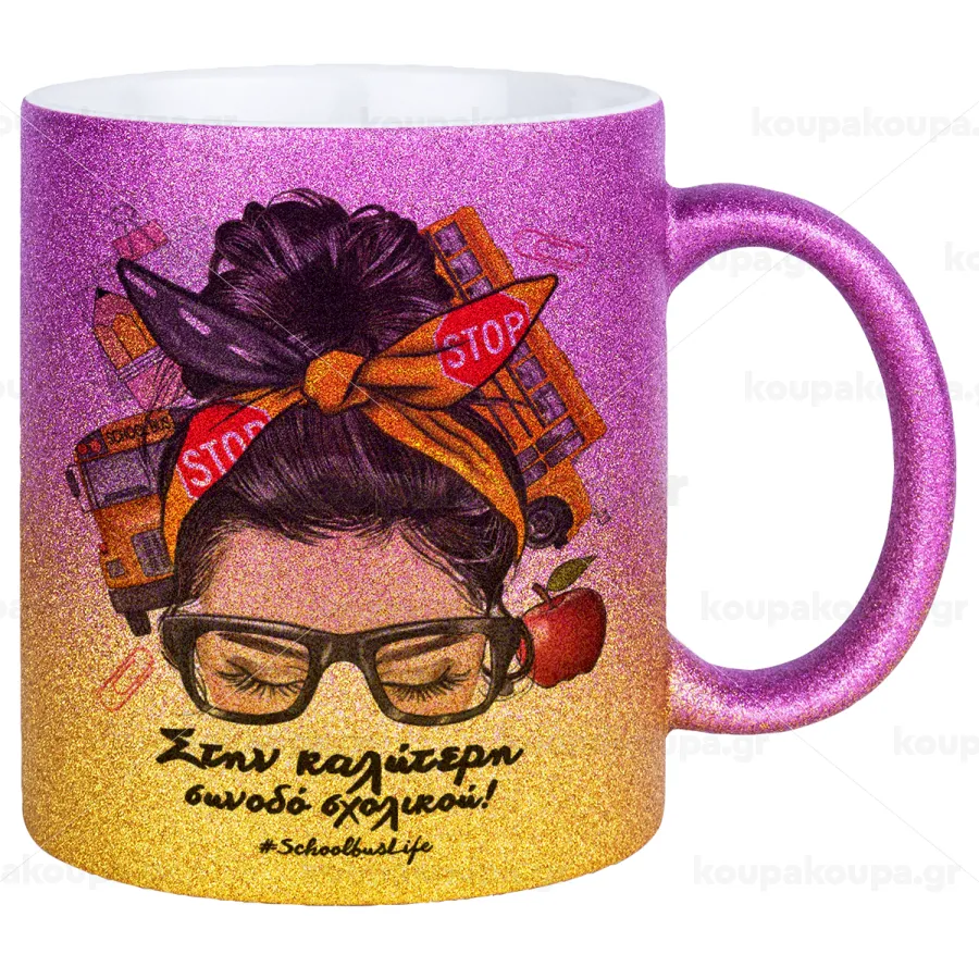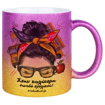 Στην καλύτερη συνοδό σχολικού!, Κούπα Χρυσή/Ροζ Glitter, κεραμική, 330ml
