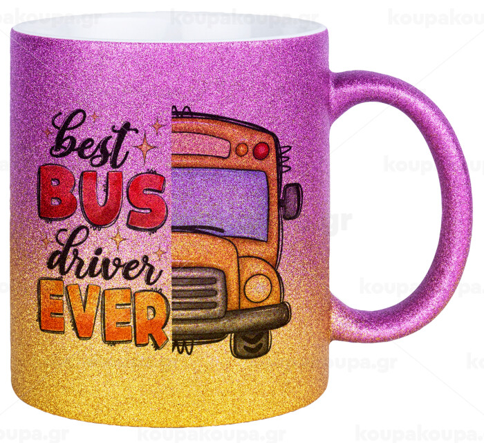 Best bus driver ever!, Κούπα Χρυσή/Ροζ Glitter, κεραμική, 330ml