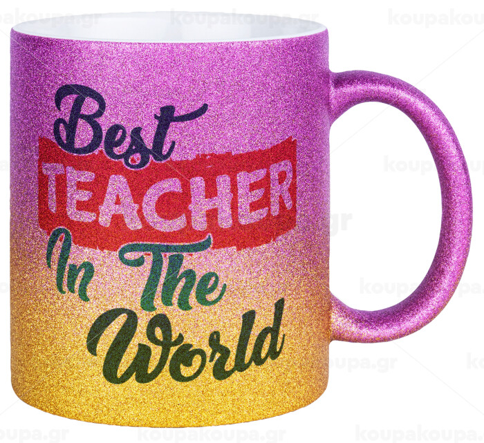 Best teacher in the World!, Κούπα Χρυσή/Ροζ Glitter, κεραμική, 330ml
