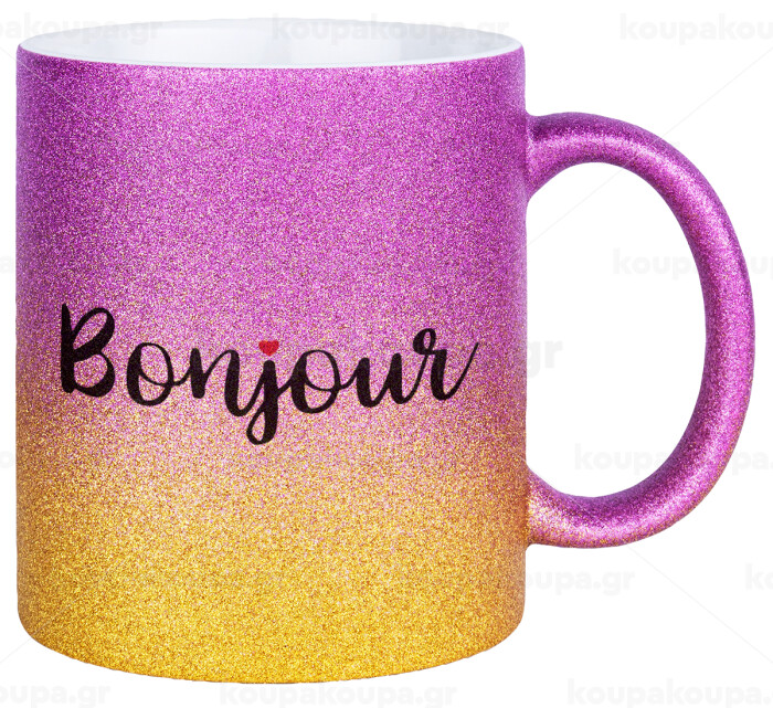 Bonjour, Κούπα Χρυσή/Ροζ Glitter, κεραμική, 330ml