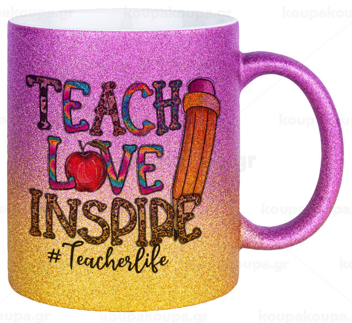 Teach, Love, Inspire, Κούπα Χρυσή/Ροζ Glitter, κεραμική, 330ml