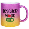 Teacher mode ON, Κούπα Χρυσή/Ροζ Glitter, κεραμική, 330ml