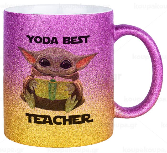 Yoda Best Teacher, Κούπα Χρυσή/Ροζ Glitter, κεραμική, 330ml