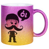 Κρητικός "Οι", Κούπα Χρυσή/Ροζ Glitter, κεραμική, 330ml