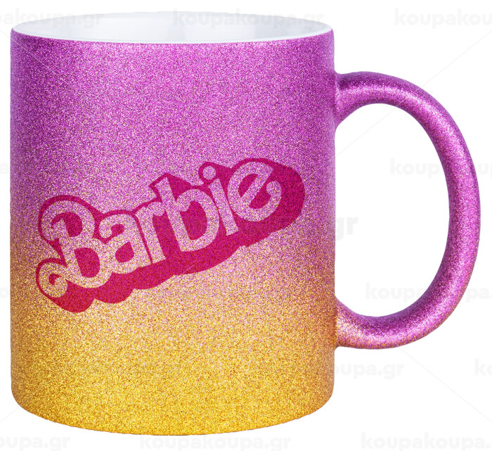 Barbie, Κούπα Χρυσή/Ροζ Glitter, κεραμική, 330ml