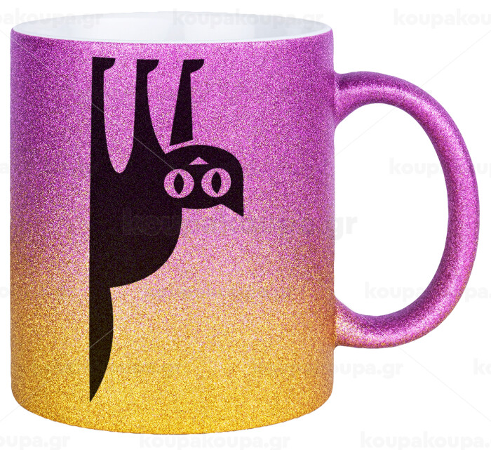 Cat upside down, Κούπα Χρυσή/Ροζ Glitter, κεραμική, 330ml