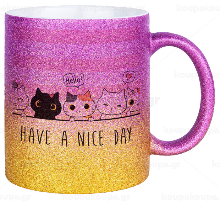 Have a nice day cats, Κούπα Χρυσή/Ροζ Glitter, κεραμική, 330ml