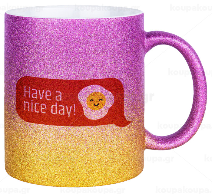 Have a nice day Emoji, Κούπα Χρυσή/Ροζ Glitter, κεραμική, 330ml